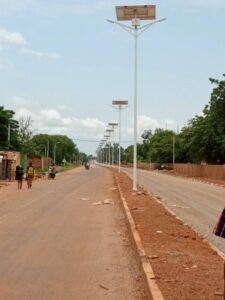 • Fourniture, installation et mise en service de 78 lampadaires solaires simple crosse de 60W à Kantchari