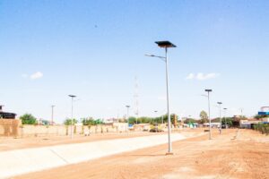 - Fourniture, installation et mise en service de 229 lampadaires solaires simples, crosse et double crosse
